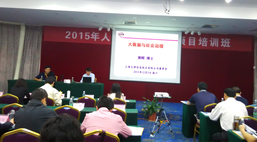發(fā)布日期:2015-12-052015年12月5日應國家統(tǒng)計局邀請,我司董事長黃暉博士作為演講嘉賓參加了在海口舉辦的 "全國統(tǒng)計局數(shù)管中心領導干部培訓講座"。黃博士演講的題目為"大數(shù)據(jù)與社會治理""大數(shù)據(jù)與統(tǒng)計局",分享內(nèi)容包括大數(shù)據(jù)應用的理論基礎、大數(shù)據(jù)的技術(shù)選擇,以及大數(shù)據(jù)與統(tǒng)計局工作應用等等。