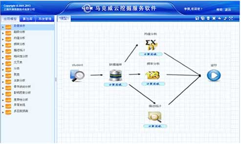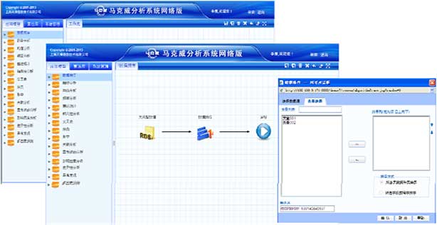 馬克威分析系統(tǒng)(網(wǎng)絡(luò)版)是一套純B/S(瀏覽器/服務(wù)器)架構(gòu)的大型統(tǒng)計分析和數(shù)據(jù)挖掘軟件,由上海天律信息技術(shù)有限公司獨立研制與開發(fā),具有完全自主知識產(chǎn)權(quán)(備案號2020SR1908071),從海量信息和數(shù)據(jù)中尋找隱含的規(guī)律和潛在的知識,通過統(tǒng)計分析和數(shù)據(jù)挖掘技術(shù)建立概念模型,為決策者提供科學(xué)的決策依據(jù)。