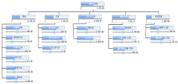 馬克威決策支持平臺(tái)提供的決策模型功能,決策模型可以挖掘出企業(yè)關(guān)注的重要指標(biāo)與其相關(guān)因素的關(guān)系,并通過What-if價(jià)值樹的形式展現(xiàn)出指標(biāo)間的層次結(jié)構(gòu)及影響程度,用戶可以通過拖拽各指標(biāo),改變指標(biāo)的取值,模型將動(dòng)態(tài)反映企業(yè)重點(diǎn)關(guān)注指標(biāo)的變化情況,輔助用戶進(jìn)行決策。