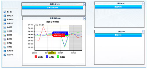 趨勢分析和預(yù)測功能以圖形方式展現(xiàn)指標(biāo)的歷史趨勢變化情況,展現(xiàn)方式可以自由選擇(包括柱狀圖、餅圖、曲線圖等)。同時(shí)平臺(tái)還提供了指標(biāo)的預(yù)測功能,輔助用戶進(jìn)行決策。